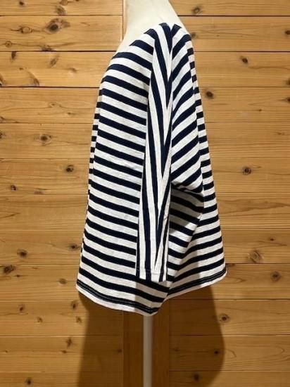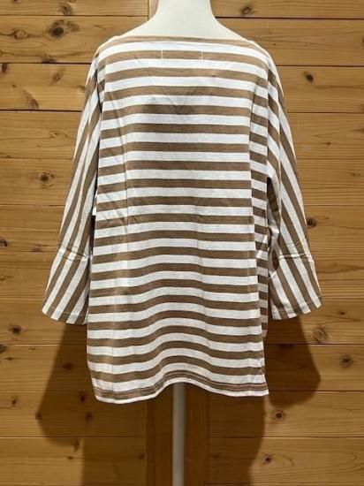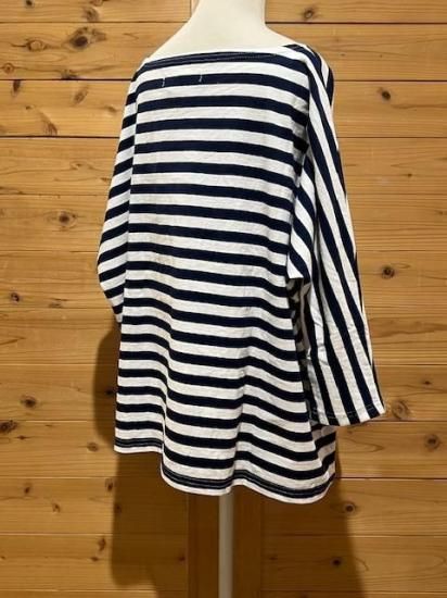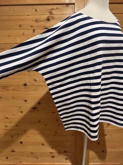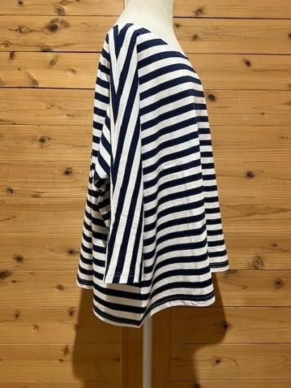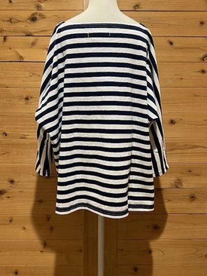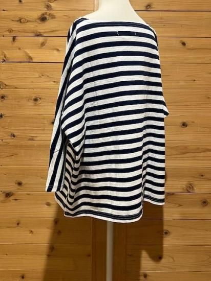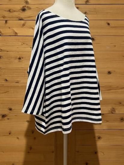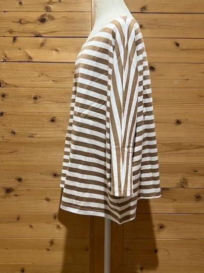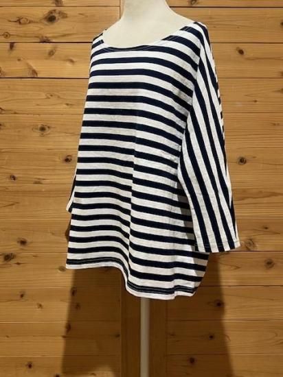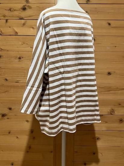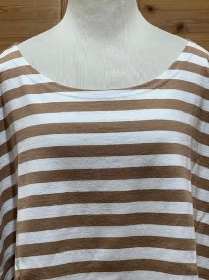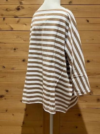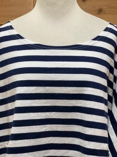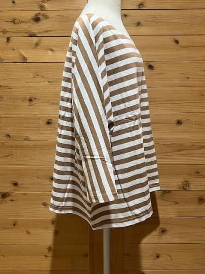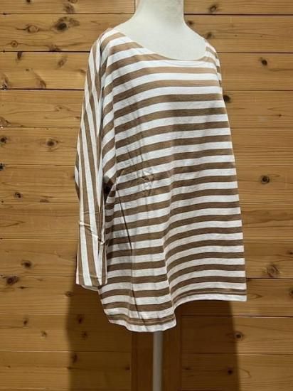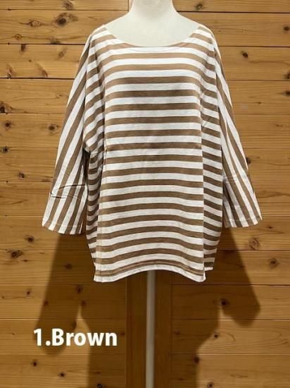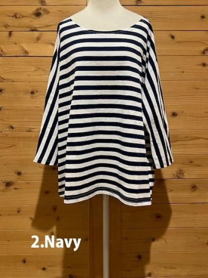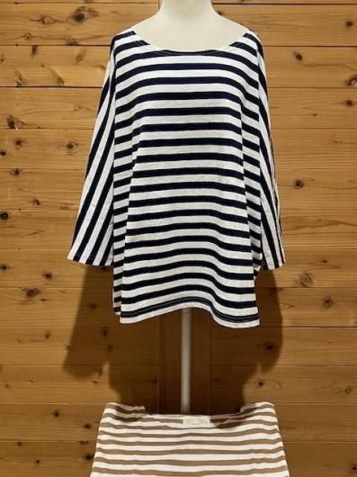 Color/1.Brown、2.Navy Size/F- 着丈(肩から)62cm、身幅70cm、袖丈(襟元から)52cm 素材/Cotton 80%、指定外繊維(Hemp) 20% 1.4cm幅のボーダー生地を使った7分袖レディースドルマンスリーブTシャツです。 ゆったりとしたデザインで体型を選ばず楽に着用できます。 *店頭販売も行っている為、在庫切れの場合がございます。 *★マークが付いている商品は在庫切れとなっております。 お取り寄せをご希望の場合、通常通りカートに入れてお進みください。 |