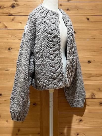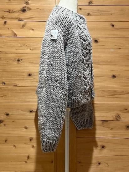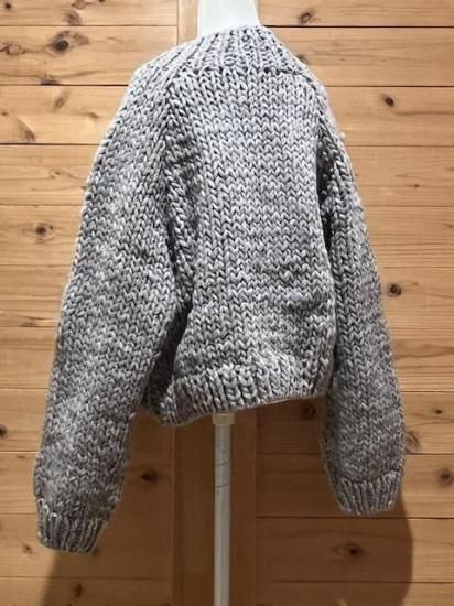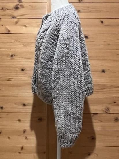 Color/L.グレー Size/着丈(肩から)48cm、身幅61cm、袖丈(襟元から)80cm 素材/Wool 100% ざっくり軽やかな極太ローゲージウールを使用。シンプルに前立てにのみケーブル編みを入れました。 カジュアルでありつつもエレガントな着こなしにもおススメ。無染色ウールを使用してます。 こちらの商品は、南米ペルーのアンデス山脈 標高約3,800mのところにある、 チチカカ湖周辺にて地元の編み子さんたちと一緒に1つ1つ丁寧に手編みで作っています。 アンデスの大自然の中、ゆったりとした時間が流れる中で編み上げられたぬくもりあふれる商品をお楽しみください。 ペルーのウール糸は軽くてボリュームがあることが特徴です。 アンデスの山域にある糸工場の、古い機械で紡績されているため 撚りもあまく、そして不均一な太さでの仕上がりに。 それがより一層味わいのあるニットに仕上がります。 また、他の産地のものに比べて、油分や水分が少ないため、ボリューム感たっぷりの見た目なのに、 着用してみるとふわっと軽やか。糸の撚りがあまい分、空気がたっぷりふくまれていて、保温性にも優れています。 *店頭販売も行っている為、在庫切れの場合がございます。 *★マークが付いている商品は在庫切れとなっております。 お取り寄せをご希望の場合、通常通りカートに入れてお進みください。 最近チェックした商品