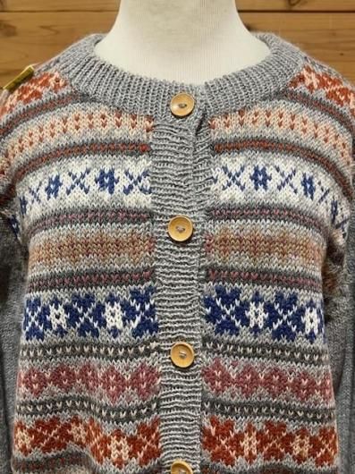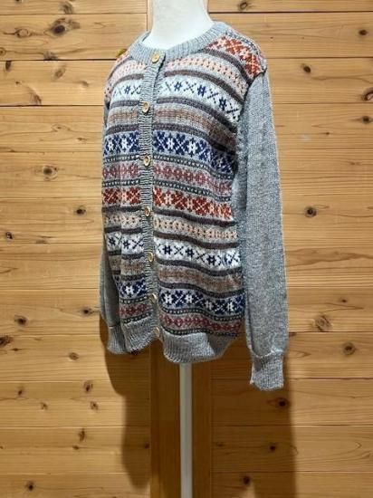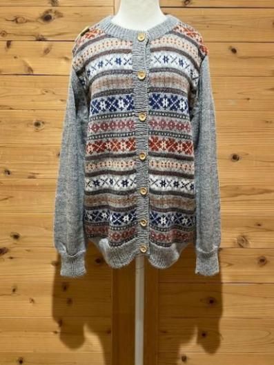 made in Peru Alpaca フェアアイル柄 カーディガン L.グレー(401)