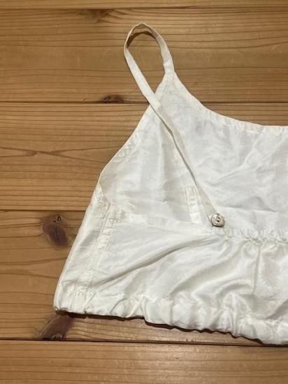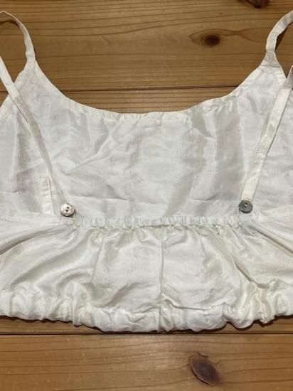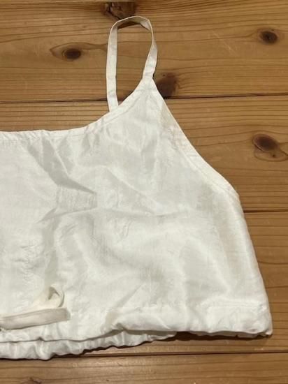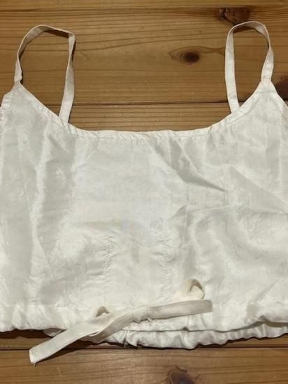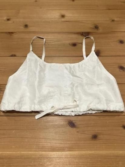 Color/White(aa57) Size/M- 前丈23cm、後丈10cm、アンダーぐるり82〜cm(ゴム・ヒモ)、肩ヒモ30cm(ボタン調節) L- 前丈25cm、後丈11cm、アンダーぐるり88〜cm(ゴム・ヒモ)、肩ヒモ30cm(ボタン調節) 素材/Silk 100% リボン- シルク100% *Made in Thailand シルク素材は吸湿性・放湿性に優れ、保湿性があり肌への刺激が少なく、光沢があり、しなやかで美しさが特徴です。 シルク布でゴムを包んだアンダーバストのリボンは、締め付け感がなく、動きやすさとサイズの調節が可能です。 ストラップは2つのボタンで調節できるのも便利! 胸元にはブラパットポケットがついており、パットの取り外しが可能です。 シンプルでおしゃれなデザインは、インナーウェアとしてだけでなく、ヨガなどのスポーツやアウトドアなど、様々な場面で活躍します。 夏だけでなく、年間通して活躍する一枚。暖かい季節にはもちろん、冷え込む時期にはウール素材の下に着用すれば汗をしっかり吸収してくれ、冷え防止にもなります。 *別売りでブラパッドもございます。併せてお使いいただけます。 *プラネッタ・オーガニカの製品は、天然素材を使用している為、無蛍光・無添加洗剤のご使用をお勧めします。 草木染めの製品は陰干しをお勧めします。乾燥機をご使用になると縮みがみられます。 手づくりの贅沢な触り心地をお楽しみください。 *店頭販売も行っている為、在庫切れの場合がございます。 *★マークが付いている商品は在庫切れとなっております。 お取り寄せをご希望の場合、通常通りカートに入れてお進みください。 最近チェックした商品