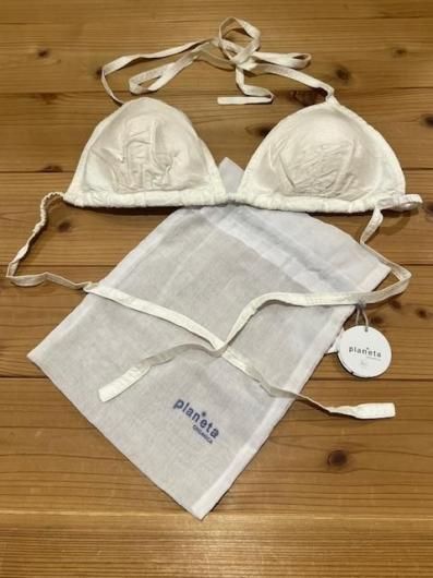 Color/White(aa67) Size/M- アンダーヒモ全長126cm(胸下ゴム入)、ネックヒモ各60cm L- アンダーヒモ全長136cm(胸下ゴム入)、ネックヒモ各62cm 素材/Silk 100% *Made in Thailand シルク素材のレディース ブラ ビキニタイプ シルク素材は吸湿性・放湿性に優れ、保湿性があり肌への刺激が少なく、光沢があり、しなやかで美しさが特徴です。 ホルダーネックタイプで、ネックとアンダーバストは紐で調節可能! バスト部分の紐には、ゴムを布で包んだ仕様になっていて、締め付けなく胸元をしっかりサポートします。 ブラパットは、取り外し可能。 暖かい季節にはもちろん、冷え込む時期にはウール素材の下に着用すれば汗をしっかり吸収してくれ、冷え防止にもなります。 サイズはMとL、カラーバリエーションも豊富でおしゃれなデザインです。 アクティブな日常やリラックスタイムに最適なアイテムです。 シワになりにくく、シルクには繊維の隙間に空気の層が非常に多くあり、夏は涼しく、冬は暖かく、快適な着心地で、一日中快適に過ごせます。 おしゃれなデザインで、リラックスタイムやアウトドアなど幅広いシーンで活躍します。 バストをしっかりサポートしつつ、自由な動きを妨げないのが魅力です。 このレディース ブラ ビキニは、スタイリッシュな着こなしを楽しみながら、着心地を追求したい方にぴったりの一枚。 爽やかな風合いと、女性らしいデザインが魅力の一着です。 *プラネッタ・オーガニカの製品は、天然素材を使用している為、無蛍光・無添加洗剤のご使用をお勧めします。草木染めの製品は陰干しをお勧めします。乾燥機をご使用になると縮みがみられます。手づくりの贅沢な触り心地をお楽しみください。 *店頭販売も行っている為、在庫切れの場合がございます。 *★マークが付いている商品は在庫切れとなっております。 お取り寄せをご希望の場合、通常通りカートに入れてお進みください。 最近チェックした商品