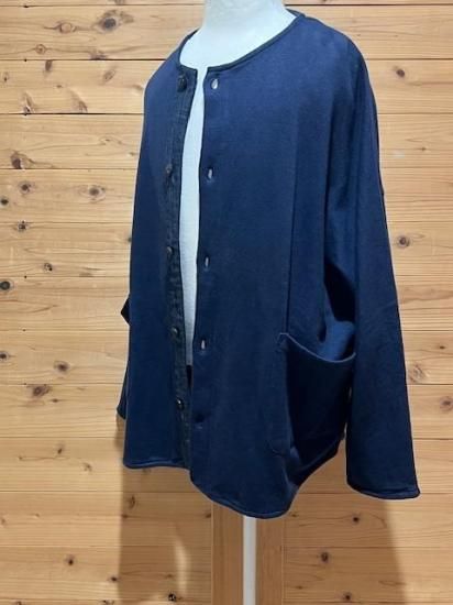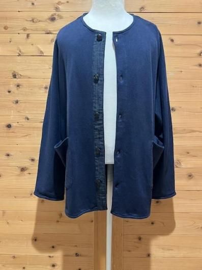 (UNISEX) SlowHands Hemp/Cotton Fleece Painter Cardigan Navy