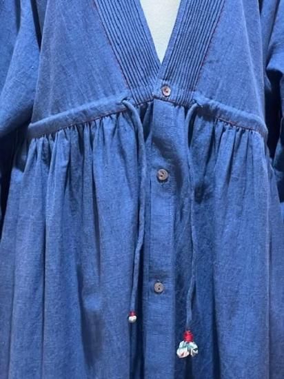 bunai HandWoven Cotton Pintuck Dress Indigo