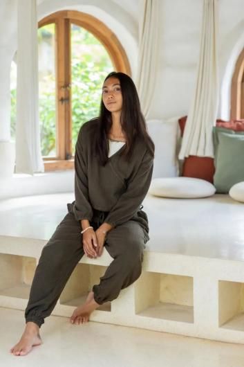 Color/スミイロ Size/Free-総丈 97cm、ウエスト70〜cm(ゴム・ヒモ)、股上25cm、股下72cm 素材/コットン 100% (ダブルガーゼ) 赤ちゃんのおくるみにも使われるやさしいガーゼを使ったパンツ。厚めの柔らかダブルガーゼ素材です。 おうちでのリラックスタイムや、ヨガや瞑想の時間に、ふんわりとした心地よさで包み込んでくれます。 ウエストはゴムとヒモ。タッセル紐は、ラフに垂らしても、ゆるいときには軽く結んでも。 足首はゴム仕様なので、小柄な方にも自然に馴染みます。 トップスのWガーゼカシュクールよりも厚いガーゼで下半身ぽかぽかです。 *indigo seaでは染めから色止めまですべてナチュラル素材を使用していますので、 一般的な化学染料で染められた製品に比べて洗濯や日光に弱く、使用を重ねるとともに、色が変化します。 自然な色落ちは草木染めならではの風合いとご理解いただき、その変化もまるごとおたのしみください。 3回目までは特に色落ちしやすいため、裏返して水で手洗いしてください。 *店頭販売も行っている為、在庫切れの場合がございます。 *★マークが付いている商品は在庫切れとなっております。 お取り寄せをご希望の場合、通常通りカートに入れてお進みください。 |