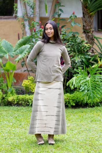 Color/ダークブラウンシボリ Size/Free-総丈100cm、ウエスト62〜cm、裾幅84cm 素材/オーガニックコットン 90% 、ポリウレタン 10% 伸縮性のあるオーガニックコットンを使ったマキシスカート。定番の人気アイテムです。 ウエスト部分にはゴムを使わず、伸びのある布を二重にすることで、ほどよいフィット感と快適さを両立。 シルエットはヒップやお腹まわりを強調しすぎない、大人に似合うタイトライン。 裾は切りっぱなしなので、お好みの丈にご自分でカットしてアレンジできます。 同素材のレギンスやスキニーを重ねれば、季節を問わず長く楽しめる一枚です。 *indigo seaでは染めから色止めまですべてナチュラル素材を使用していますので、 一般的な化学染料で染められた製品に比べて洗濯や日光に弱く、使用を重ねるとともに、色が変化します。 自然な色落ちは草木染めならではの風合いとご理解いただき、その変化もまるごとおたのしみください。 3回目までは特に色落ちしやすいため、裏返して水で手洗いしてください。 *店頭販売も行っている為、在庫切れの場合がございます。 *★マークが付いている商品は在庫切れとなっております。 お取り寄せをご希望の場合、通常通りカートに入れてお進みください。 |