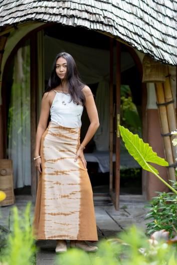 Color/キャメルシボリ Size/Free-総丈100cm、ウエスト62〜cm、裾幅84cm 素材/オーガニックコットン 90% 、ポリウレタン 10% 伸縮性のあるオーガニックコットンを使ったマキシスカート。定番の人気アイテムです。 ウエスト部分にはゴムを使わず、伸びのある布を二重にすることで、ほどよいフィット感と快適さを両立。 シルエットはヒップやお腹まわりを強調しすぎない、大人に似合うタイトライン。 裾は切りっぱなしなので、お好みの丈にご自分でカットしてアレンジできます。 同素材のレギンスやスキニーを重ねれば、季節を問わず長く楽しめる一枚です。 *indigo seaでは染めから色止めまですべてナチュラル素材を使用していますので、 一般的な化学染料で染められた製品に比べて洗濯や日光に弱く、使用を重ねるとともに、色が変化します。 自然な色落ちは草木染めならではの風合いとご理解いただき、その変化もまるごとおたのしみください。 3回目までは特に色落ちしやすいため、裏返して水で手洗いしてください。 *店頭販売も行っている為、在庫切れの場合がございます。 *★マークが付いている商品は在庫切れとなっております。 お取り寄せをご希望の場合、通常通りカートに入れてお進みください。 最近チェックした商品