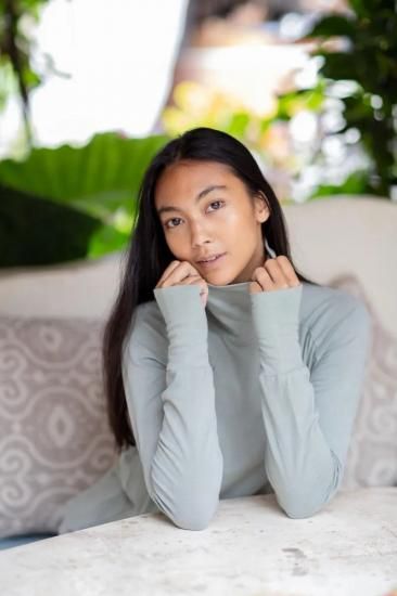 Color/モスグリーン Size/Free- 着丈(肩から)56cm、バスト44cm、袖丈71cm、裾幅48cm 素材/オーガニックコットン 90%、ポリウレタン 10% 伸縮性ありのオーガニックコットン素材タートルネック&サムホール(袖長で親指用の穴付き) 仕様で、上半身を完璧にカバーするロングスリーブカットソーです。 寒い季節のインナーとして大活躍すると共に、ダークカラーになりがちな冬のコーディネイトの首元に優しい色合いで温かみを加えます。 また、袖の11分丈は腕が長く見えるとともに、体全体の印象を細く見せる嬉しい効果があります。 ゆるいシルエットながら、ストレッチが効いた素材でフィット感あり。 同素材のオーガニックコットンスキニーと合わせて、ヨガウエアにも最適です。 ネック部分はそのままカジュアルに、または折ってカッチっと感をお楽しみください。 草木染めの優しい色合いと共に、温かい冬をお過ごしくださいますよう。 *indigo seaでは染めから色止めまですべてナチュラル素材を使用していますので、 一般的な化学染料で染められた製品に比べて洗濯や日光に弱く、使用を重ねるとともに、色が変化します。 自然な色落ちは草木染めならではの風合いとご理解いただき、その変化もまるごとおたのしみください。 3回目までは特に色落ちしやすいため、裏返して水で手洗いしてください。 *店頭販売も行っている為、在庫切れの場合がございます。 *★マークが付いている商品は在庫切れとなっております。 お取り寄せをご希望の場合、通常通りカートに入れてお進みください。 |