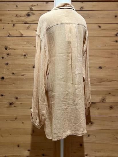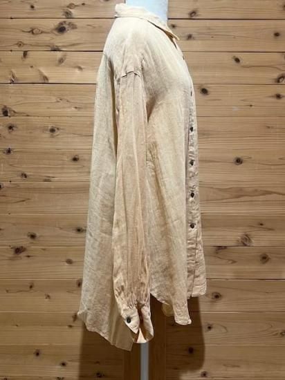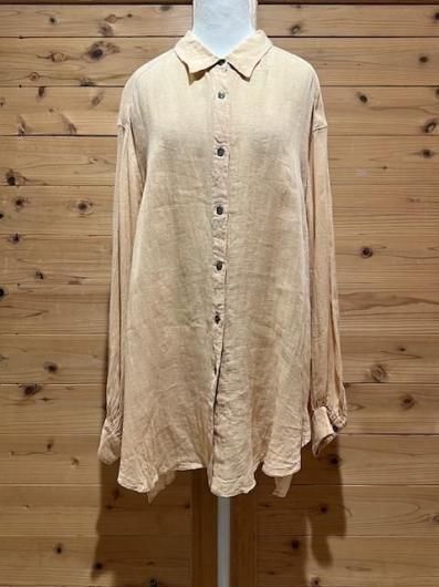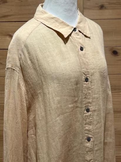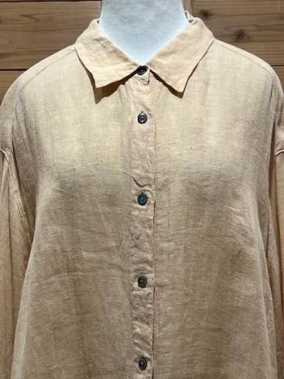 Color/Chrysanthemum-Orange (NaturalDye in OKINAWA) Size/F- 着丈(肩から)74cm(前)、77cm(後)、身幅62cm、肩幅47cm、袖丈55cm 素材/麻(Linen) 100% 裏衿- 絹 100% *加工の特性上、サイズに多少の誤差がありますが、ご了承ください。 *シャリ感のあるリネンボイル生地に沖縄の草木で染めを施したギャザーブラウス。 凸凹感のあるリネン糸をゆるく織り上げた生地で透け感と柔らかさが加わりました。 Aラインシルエットの裾の広がりや袖や身頃に入ったギャザーにより、風が自然と通り抜けるような涼しげなブラウスに仕上がっています。 肌に直接触れる首元には、内側にシルク素材を使い、柔らかいサラッとした肌あたりになるよう着心地にも配慮した拘りの一着です。 どんなボトムスにも合わせやすく、ブラウスでの着用はもちろん、羽織としてもおすすめ。 *enricaはその時に出会う人達との“縁”を大切に、 関わる全ての人が服を作る一つの手として楽しみながら繋がっていけるような服作りをしたいと考えています。 今を経てこの先へと受け継がれ、新たな伝統となっていくような服作りを楽しみながら続けるつもりです。 *店頭販売も行っている為、在庫切れの場合がございます。 *★マークが付いている商品は在庫切れとなっております。 お取り寄せをご希望の場合、通常通りカートに入れてお進みください。 |