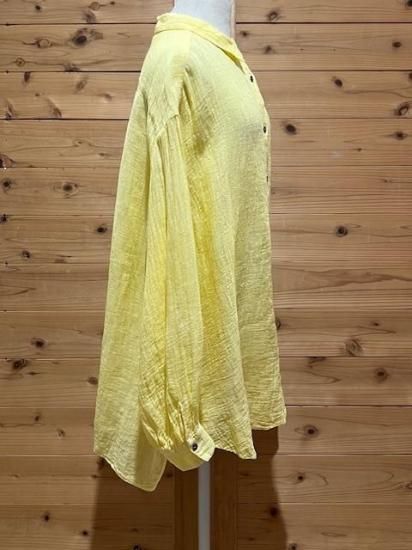 Color/Fukugi-Yellow (NaturalDye in OKINAWA) Size/F- 着丈(肩から)74cm(前)、77cm(後)、身幅62cm、肩幅47cm、袖丈55cm 素材/麻(Linen) 100% 裏衿- 絹 100% *加工の特性上、サイズに多少の誤差がありますが、ご了承ください。 *シャリ感のあるリネンボイル生地に沖縄の草木で染めを施したギャザーブラウス。 凸凹感のあるリネン糸をゆるく織り上げた生地で透け感と柔らかさが加わりました。 Aラインシルエットの裾の広がりや袖や身頃に入ったギャザーにより、風が自然と通り抜けるような涼しげなブラウスに仕上がっています。 肌に直接触れる首元には、内側にシルク素材を使い、柔らかいサラッとした肌あたりになるよう着心地にも配慮した拘りの一着です。 どんなボトムスにも合わせやすく、ブラウスでの着用はもちろん、羽織としてもおすすめ。 *enricaはその時に出会う人達との“縁”を大切に、 関わる全ての人が服を作る一つの手として楽しみながら繋がっていけるような服作りをしたいと考えています。 今を経てこの先へと受け継がれ、新たな伝統となっていくような服作りを楽しみながら続けるつもりです。 *店頭販売も行っている為、在庫切れの場合がございます。 *★マークが付いている商品は在庫切れとなっております。 お取り寄せをご希望の場合、通常通りカートに入れてお進みください。 |