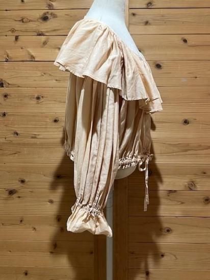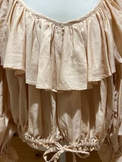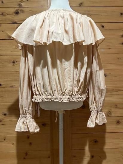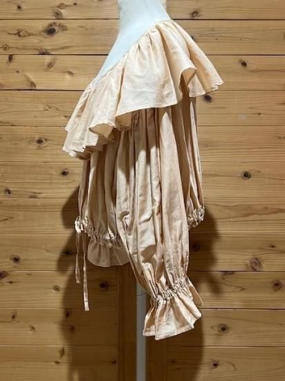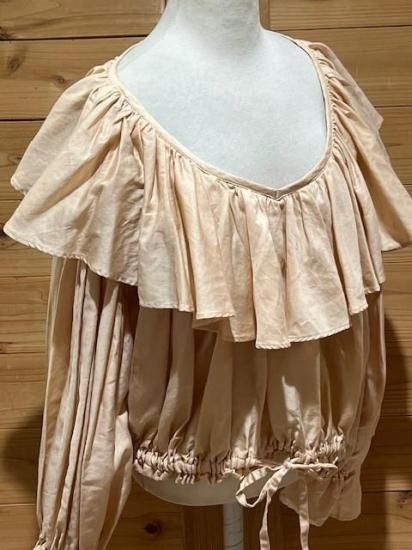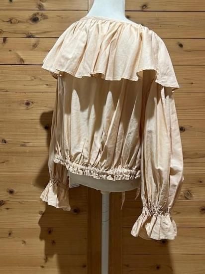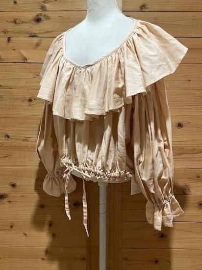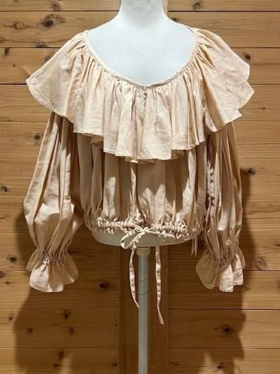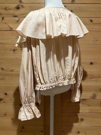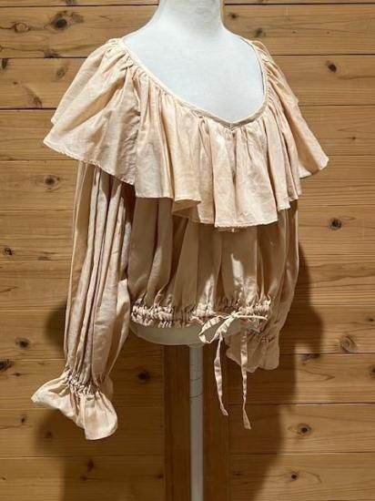 Color/Beige-Pink Size/F- 着丈(肩から)47cm、身幅約65cm、肩幅57cm、袖丈48cm、裾幅45〜cm(ゴム・ヒモ) 素材/綿 100% *加工の特性上、サイズに多少の誤差がありますが、ご了承ください。 *ボリュームのあるギャザーが大胆にデザインされたブラウス。 前後着用可能でVネックとボートネックの2WAYを楽しめます。 袖口はゴムが入っており、ふわっと広がるディティールがポイントに。 ウエストはリボンでしぼれるので着丈を短くして変化を楽しめます。 パンツやスカートのシルエットによって調整すればどんなシルエットのボトムでも合わせられます。 女性らしさのたっぷりと詰まった万能ブラウスです。 *enricaはその時に出会う人達との“縁”を大切に、 関わる全ての人が服を作る一つの手として楽しみながら繋がっていけるような服作りをしたいと考えています。 今を経てこの先へと受け継がれ、新たな伝統となっていくような服作りを楽しみながら続けるつもりです。 *店頭販売も行っている為、在庫切れの場合がございます。 *★マークが付いている商品は在庫切れとなっております。 お取り寄せをご希望の場合、通常通りカートに入れてお進みください。 |