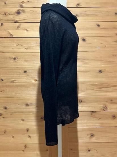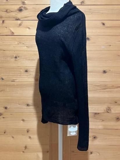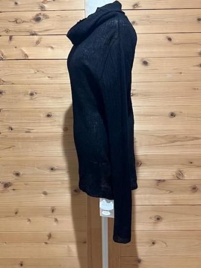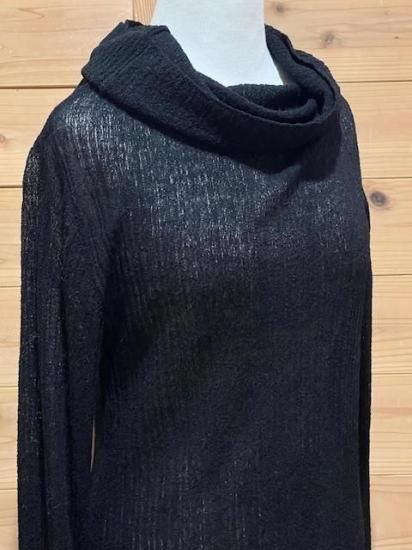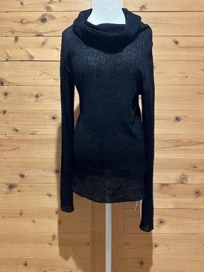 Color/Black Size/F- 着丈(肩から)66cm、身幅37〜cm、肩幅37cm、袖丈65cm 素材/ウール 79%、ナイロン 21% *加工の特性上、サイズに多少の誤差がありますが、ご了承ください。 *シャリ感のある細番手のウールを使用したプルオーバーです。 一度編み形状記憶させ、解いて再度編み直すことでウネのある独特な素材感に仕上がリました。 ウールながらさらっとした肌当たりが魅力的で、直接肌に触れても心地よく着ていただけます。 タートル部分を動かしオフショルダーとしても着用可能。 まだ暑さの残る時期や春先はインナーで遊んで透け感を楽しんで。 もちろん冬時期はキャミソールブラウスやシャツスタイルのインナーとして組み合わせるのも素敵です。 オールシーズン着られて、いろいろな着方の出来る万能なアイテム。 *enricaはその時に出会う人達との“縁”を大切に、 関わる全ての人が服を作る一つの手として楽しみながら繋がっていけるような服作りをしたいと考えています。 今を経てこの先へと受け継がれ、新たな伝統となっていくような服作りを楽しみながら続けるつもりです。 *店頭販売も行っている為、在庫切れの場合がございます。 *★マークが付いている商品は在庫切れとなっております。 お取り寄せをご希望の場合、通常通りカートに入れてお進みください。 最近チェックした商品