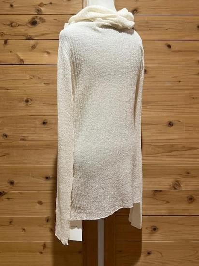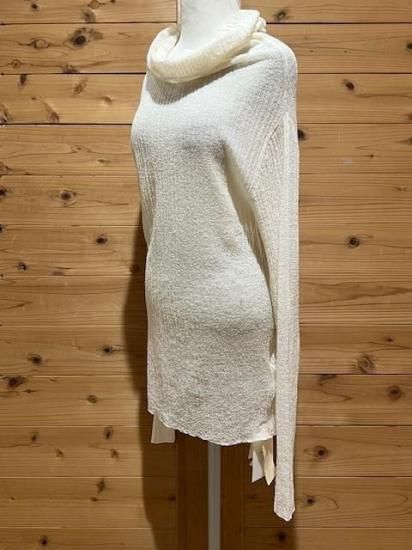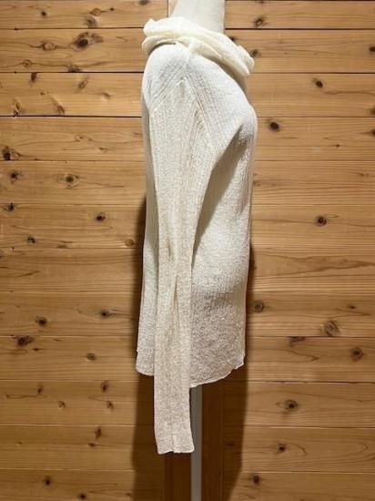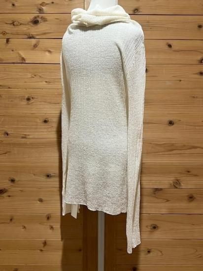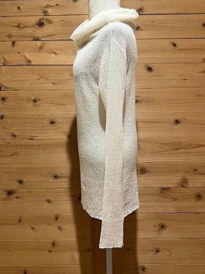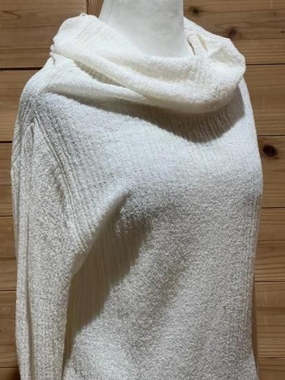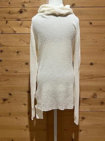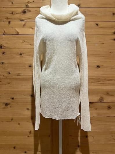 Color/Natural Size/F- 着丈(肩から)66cm、身幅37〜cm、肩幅37cm、袖丈65cm 素材/ウール 79%、ナイロン 21% *加工の特性上、サイズに多少の誤差がありますが、ご了承ください。 *シャリ感のある細番手のウールを使用したプルオーバーです。 一度編み形状記憶させ、解いて再度編み直すことでウネのある独特な素材感に仕上がリました。 ウールながらさらっとした肌当たりが魅力的で、直接肌に触れても心地よく着ていただけます。 タートル部分を動かしオフショルダーとしても着用可能。 まだ暑さの残る時期や春先はインナーで遊んで透け感を楽しんで。 もちろん冬時期はキャミソールブラウスやシャツスタイルのインナーとして組み合わせるのも素敵です。 オールシーズン着られて、いろいろな着方の出来る万能なアイテム。 *enricaはその時に出会う人達との“縁”を大切に、 関わる全ての人が服を作る一つの手として楽しみながら繋がっていけるような服作りをしたいと考えています。 今を経てこの先へと受け継がれ、新たな伝統となっていくような服作りを楽しみながら続けるつもりです。 *店頭販売も行っている為、在庫切れの場合がございます。 *★マークが付いている商品は在庫切れとなっております。 お取り寄せをご希望の場合、通常通りカートに入れてお進みください。 最近チェックした商品