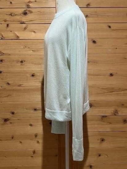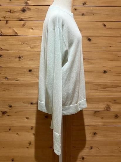 Color/PaleGreen Size/F- 着丈59cm、身幅47cm、肩幅45cm、袖丈67cm 素材/カシミヤ 50%、絹 50% *上質なカシミヤシルク素材を使って編み地を変えた天竺編みのニット。 ベーシックな形だからこそ、主役になる華やかなカラーを作りました。 コーディネートにメリハリを与えてくれるお色です。 軽くあたたかなカシミヤにシルクを加えることで、しっとりと肌に溶け込むような着心地。 少し透け感を持たせているので、インナーを組み合わせて印象を変えても楽しめます。 程よいゆとりのあるシルエットは、どんなタイプのボトムとも好相性。 流行りに左右されず長く着ていただけるベーシックな一着です *enricaはその時に出会う人達との“縁”を大切に、 関わる全ての人が服を作る一つの手として楽しみながら繋がっていけるような服作りをしたいと考えています。 今を経てこの先へと受け継がれ、新たな伝統となっていくような服作りを楽しみながら続けるつもりです。 *店頭販売も行っている為、在庫切れの場合がございます。 *★マークが付いている商品は在庫切れとなっております。 お取り寄せをご希望の場合、通常通りカートに入れてお進みください。 |