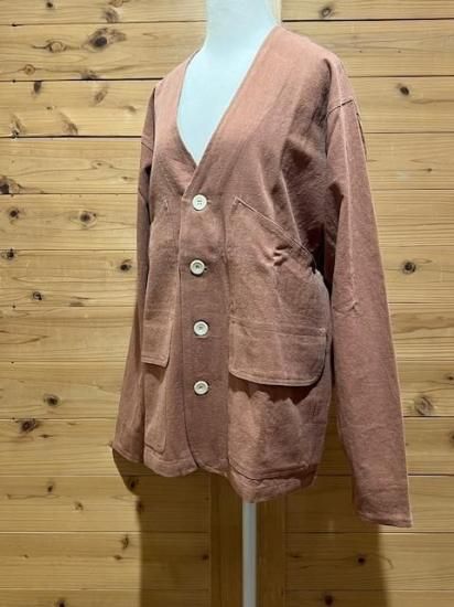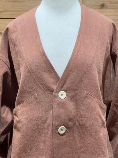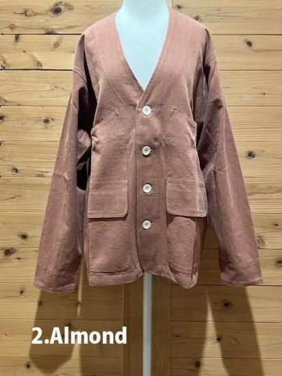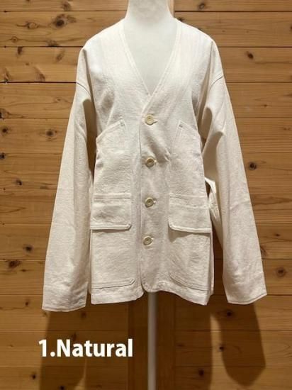 Color/1.Natural、2.Almond Size/S- 着丈(肩から)68cm、身幅54cm、肩幅44cm、袖丈58cm M- 着丈(肩から)72m、身幅56cm、肩幅47cm、袖丈60cm L- 着丈(肩から)74cm、身幅60cm、肩幅50cm、袖丈61cm 素材/植物繊維(Hemp) 55%、OrganicCotton 45% ヘンプ55%、オーガニックコットン45%8オンスの厚手キャンバス生地のノーカラーカーディガンです。 ゆったりめのサイズ感で、気軽に羽織って頂けます。ポケットが4つ付いてます。 *店頭販売も行っている為、在庫切れの場合がございます。 *★マークが付いている商品は在庫切れとなっております。 お取り寄せをご希望の場合、通常通りカートに入れてお進みください。 最近チェックした商品