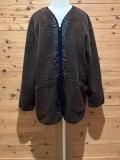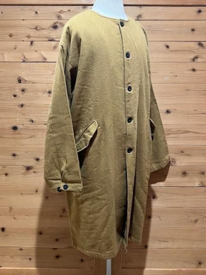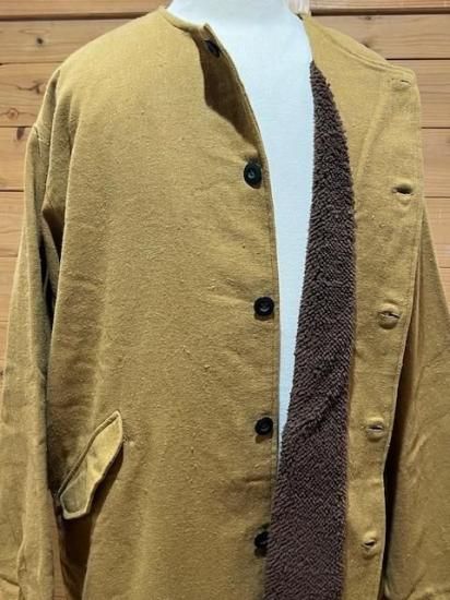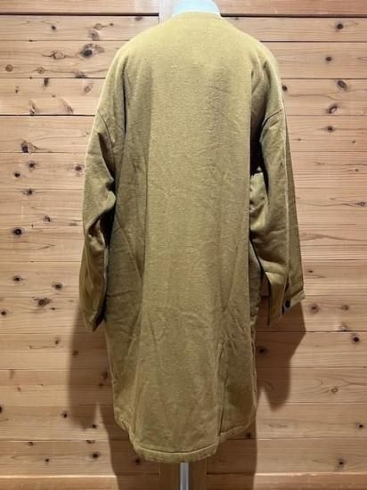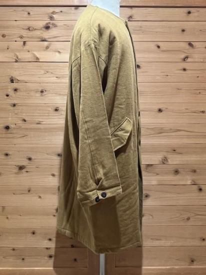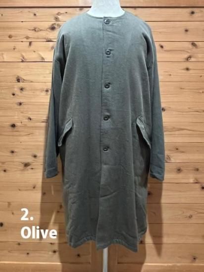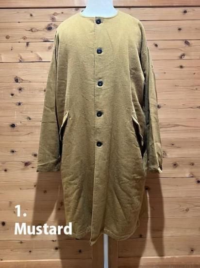 Color/1.Mustard、2.Olive Size/M- 着丈(肩から)103cm、身幅69cm、肩幅57cm、袖丈57cm L- 着丈(肩から)104cm、身幅70cm、肩幅58cm、袖丈58cm 素材/指定外繊維(Hemp) 55%、OrganicCotton 45% ボア- Polyester 100% 裏地にソフトボア素材を使用したゆったりシルエットのライトで暖かな着心地のノーカラコートです。 表地のヘンプ55% オーガニックコットン45%のオリジナルフランネル生地は、生地の両面を起毛させているため、 ふんわりと柔らかで、ほどよく暖かいのが特徴です。 袖裏にはタフタを使っているので滑りがよく着脱しやすいです。 *店頭販売も行っている為、在庫切れの場合がございます。 *★マークが付いている商品は在庫切れとなっております。 お取り寄せをご希望の場合、通常通りカートに入れてお進みください。 最近チェックした商品