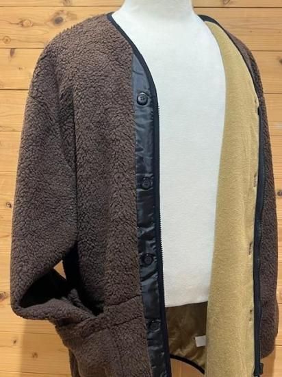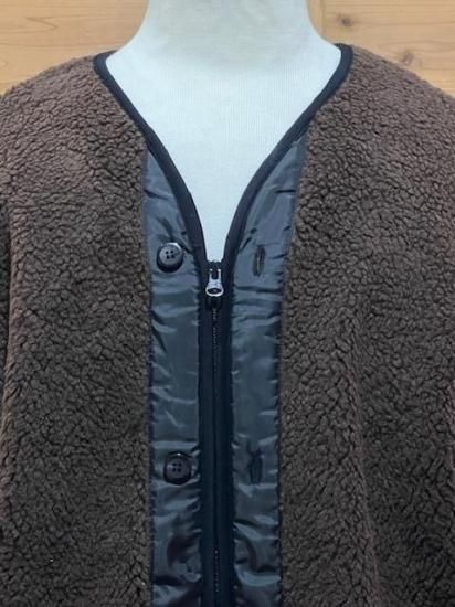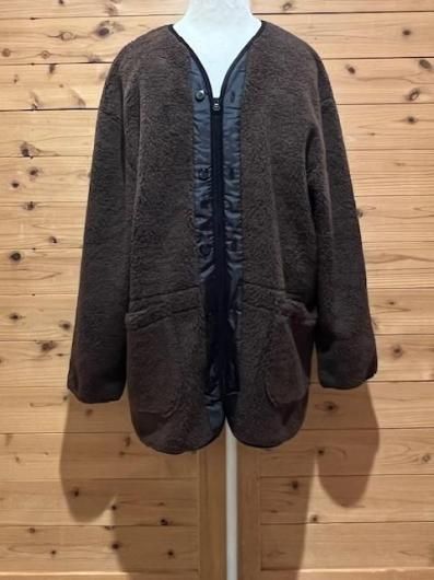 Color/Brown Size/L- 着丈(肩から)81cm(前)、85cm(後)、身幅64cm、肩幅58cm、袖丈58cm 素材/Polyester 100% 裏地- 指定外繊維(Hemp) 55%、OrganicCotton 45% 表にボアを使い保温性を持たせ、裏地にはヘンプオーガニックコットンの天竺生地を使い着心地の良さを出しています。 袖裏にはタフタを使っているので滑りがよく着脱しやすいです。 前はボタンとファスナーで2通りの閉め方が出来ます。 *店頭販売も行っている為、在庫切れの場合がございます。 *★マークが付いている商品は在庫切れとなっております。 お取り寄せをご希望の場合、通常通りカートに入れてお進みください。 |