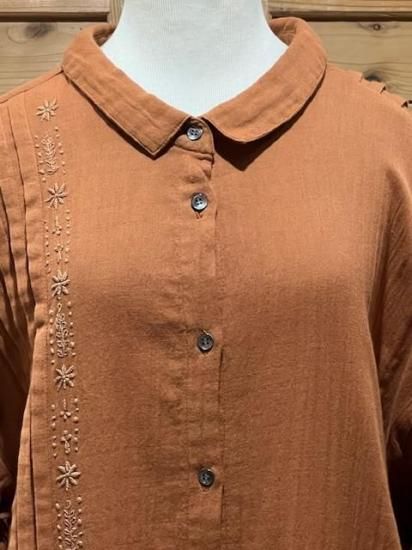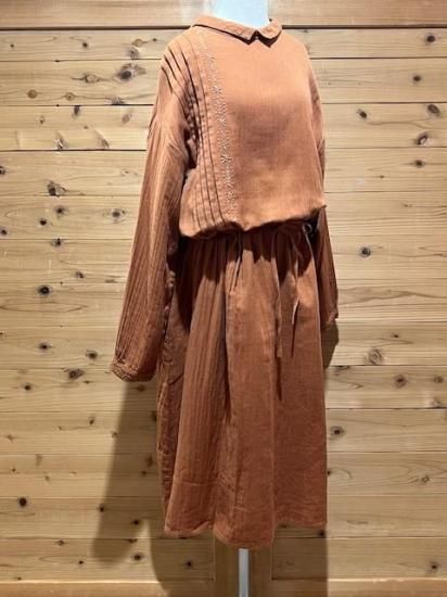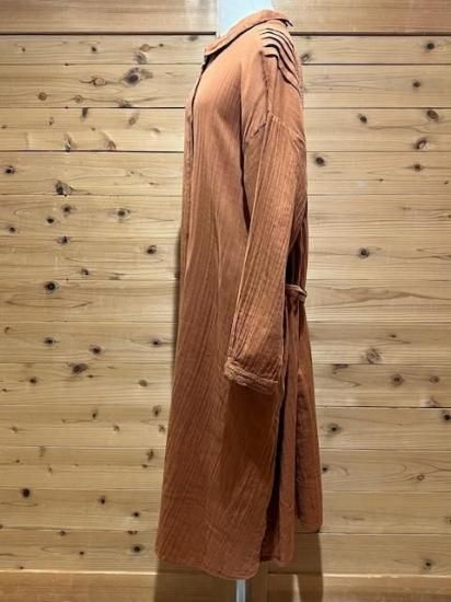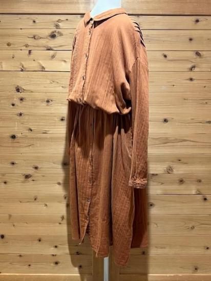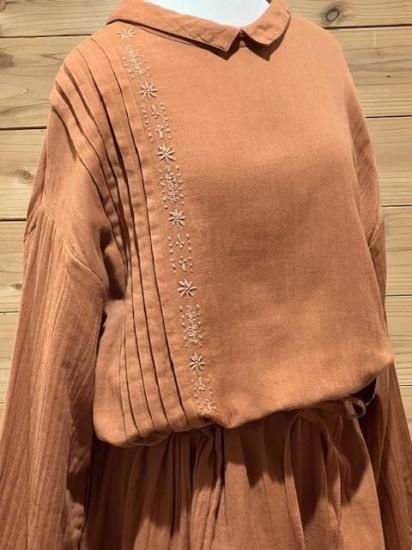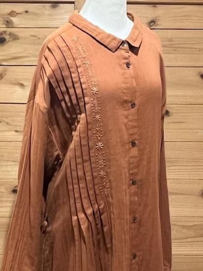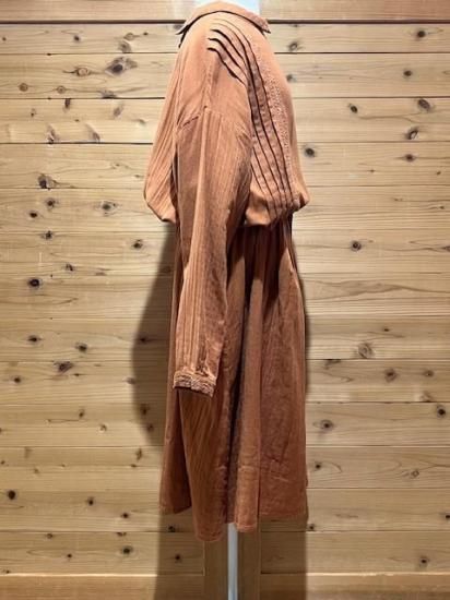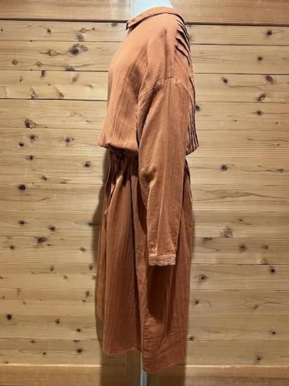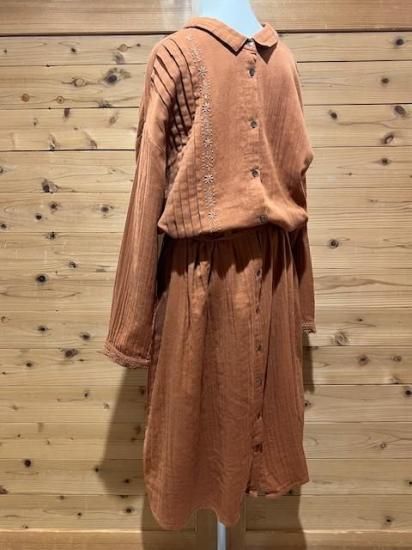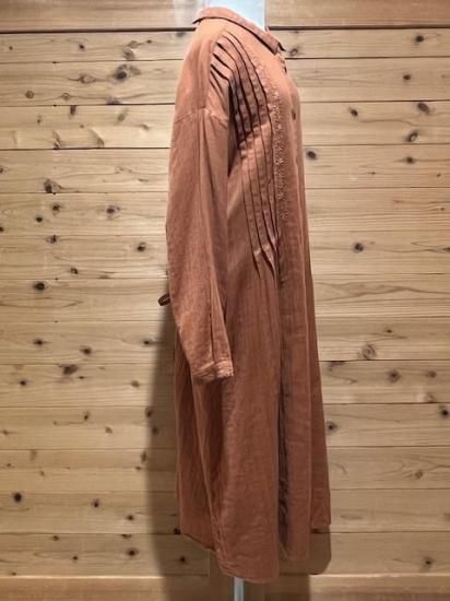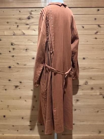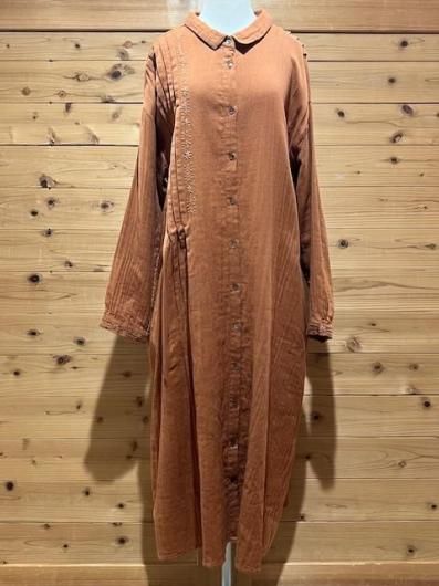 Color/BR Size/F- 着丈(肩から)115cm、身幅57m 、肩幅53cm、袖丈49cm 素材/Cotton 100% (ダブルガーゼ) *片面はボタン開きのシャツワンピとして、もう片面はシャツカラーのかぶりワンピとして着用可能な2wayワンピ。 左右片側だけに肩線から長く入れた5本のタックがアシンメトリーなデザインポイント。 身頃のタックの横と袖口にはスターアニス、クローブ、コリアンダーシード、ローズマリーの刺繍。 ウエスト紐付なので、シルエットに変化をつけられる。両脇ポケット付。 *店頭販売も行っている為、在庫切れの場合がございます。 *★マークが付いている商品は在庫切れとなっております。 お取り寄せをご希望の場合、通常通りカートに入れてお進みください。 |